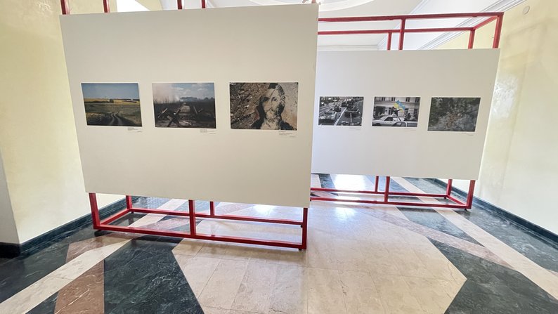 Свої роботи на виставці представили 11 авторів. Серед них дві світлини про Херсон. Євгеній говорить, хотіли показати більше. Але через те, що професійні фотохудожники в окупації не могли вільно працювати, робіт поки що не знайшли. Зараз просять митців поділитися світлинами.