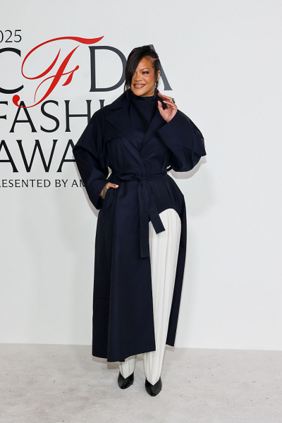 Як пише Harpers Bazaar, Ріанна запізнилася на церемонію. Співачка обрала для події образ від Alaïa: синє довге пальто з асиметричним низом та білі штани.