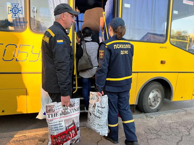 Далі рятувальники доправили людей до автобусу, призначеного для подальшого транспортування їх до місця тимчасового проживання.