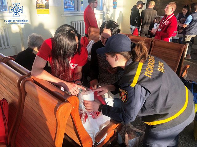 Спільно з рятувальниками на вокзалі були присутні представники органів влади, психологи ДСНС, поліцейські, представники благодійної організації «Карітас України» та Товариства Червоного Хреста України.