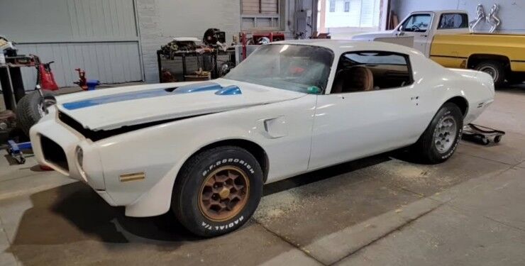 Pontiac Firebird 1971 встигли перефарбувати, а також частково замінили оздоблення його салону (тому місцями воно синє, а місцями — бежеве). Разом з авто знайшли безліч запчастин, тож завершити реставрацію буде нескладно.