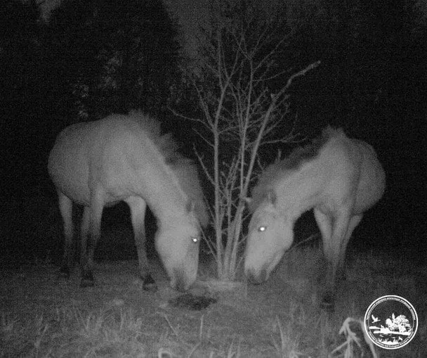 У Чорнобильському радіаційно-екологічному біосферному заповіднику оприлюднили унікальні кадри з фотопасток. Об’єктиви камер зафіксували нічну прогулянку коней Пржевальського – єдиного виду диких коней, що зберігся у природі.
