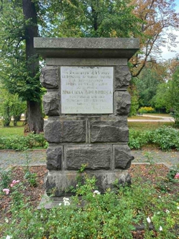 На нижній терасі парку Високий Замок і досі стоїть великий пам’ятний камінь часів тоталітарного СРСР із написом, який вже доволі важко розібрати, але допитливим таки вдається його прочитати: