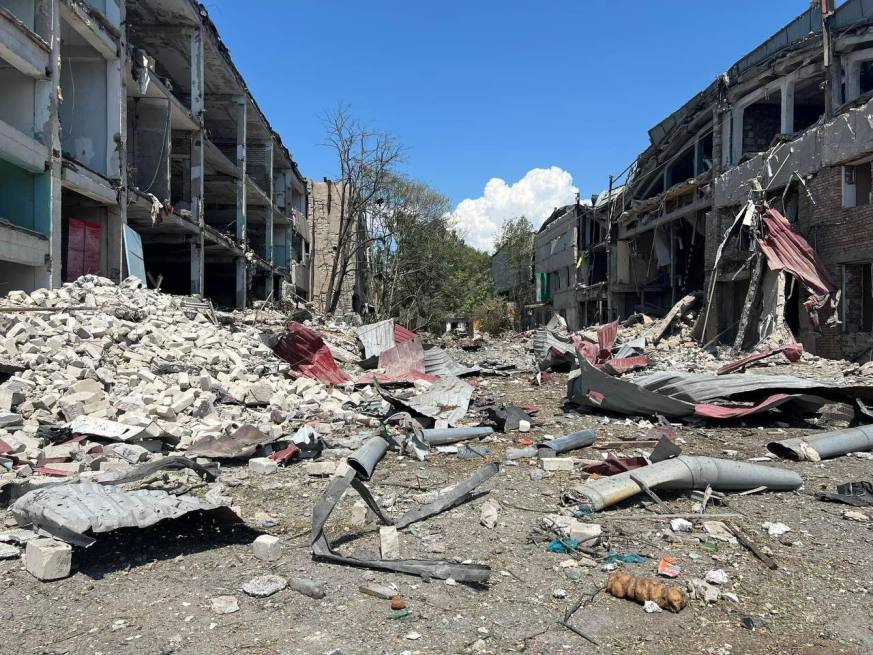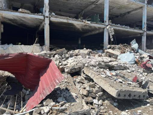 Унаслідок удару частково зруйновано фасад адміністративної будівлі приватного підприємства, складські приміщення та цивільні автомобілі.