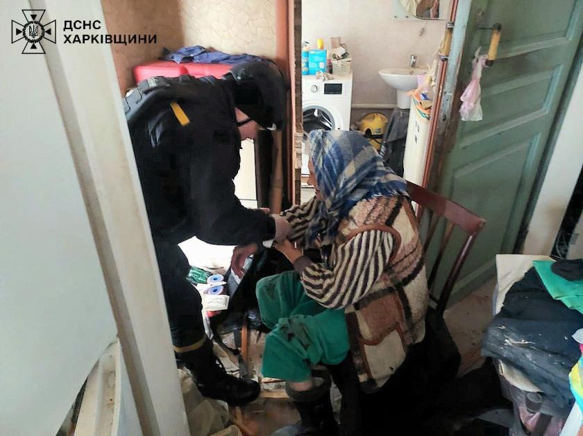 Після гасіння пожежі рятувальники ДСНС знайшли 86-річну жінку. Вона отримала вибухове поранення, перелом. Медики госпіталізували постраждалу до лікарні. Про це повідомив начальник ХОВА Олег Синєгубов.