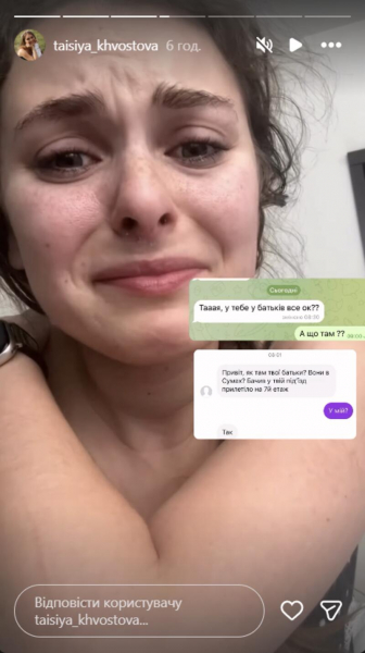 Російський дрон потрапив до будинку батьків Таїсії Хвостової instagram.com/taisiya_khvostova