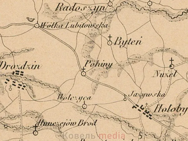 Зауважимо, що пам’ятних старовинних об’єктів у сусідніх з Погіньками селах при дорозі з Луцька на Ковель немає, крім як у теперішньому центрі територіальної громади, а в ту пору волосному містечку Голоби, де руїни паркової садиби польських вельмож Вільгів і пам’ятки архітектури збереглися дотепер.