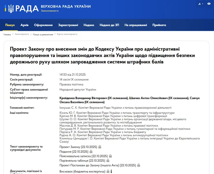 Таким чином, система штрафних балів, на думку парламентаріїв, стане інструментом, який дасть змогу впливати не тільки фінансово, а й дисциплінарним чином — через обмеження можливості брати участь у дорожньому русі.
