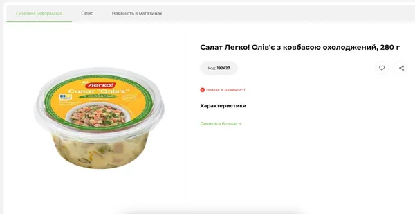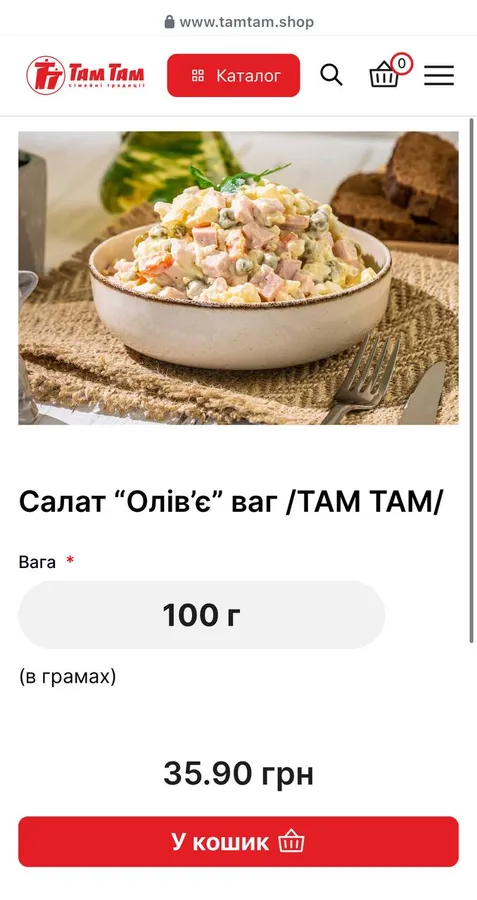У супермаркеті Там Там «Олів’є» здебільшого продають у відділі кулінарії.