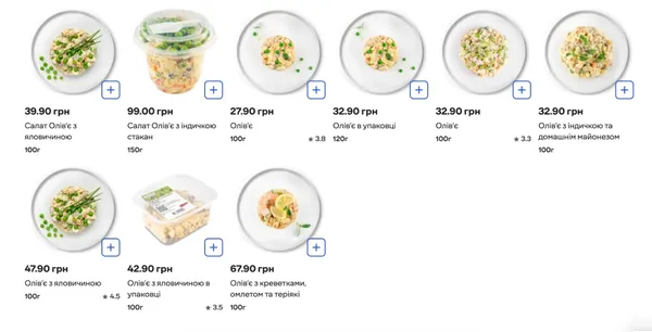 У цій мережі представлено кілька варіантів салату «Олів’є».