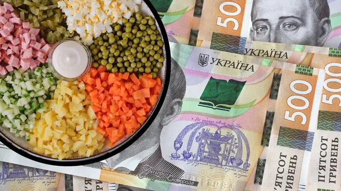 Великі упаковки (близько 750–800 г) стандартного салату обійдуться покупцям приблизно у 230–280 гривень.«Олів’є» з креветками або яловичиною за кілограм – від 480 до 680 гривень.