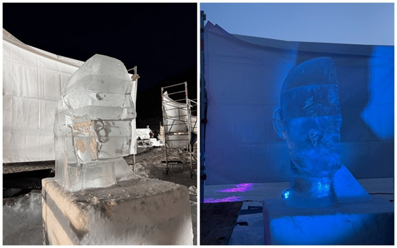 "Тут є своя особливість: сонце виходить приблизно об одинадцятій ранку і ховається десь о пів на четверту дня. У цей проміжок скульптури обов’язково потрібно накривати, бо лід дуже швидко псується", — пояснює митець.
