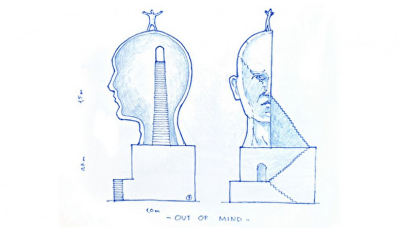 Ескіз конкурсної роботи скульптора Олексія Поди “Out of mind”. Фото: valloire.net"Ця скульптура — про момент, коли серце прагне свободи, але розум і життєві обставини не дозволяють її здобути. Вона про внутрішню боротьбу людини, про протистояння емоцій і свідомості", — пояснює автор.