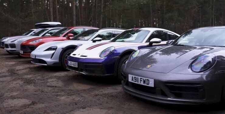 У цьому заїзді порівняли такі моделі Porsche: 911 Dakar, 911 Carrera 4 GTS, Macan GTS, Taycan Cross Turismo 4S, Cayenne E-Hybrid і Cayenne S. Усі ці автомобілі сильно відрізняються один від одного.