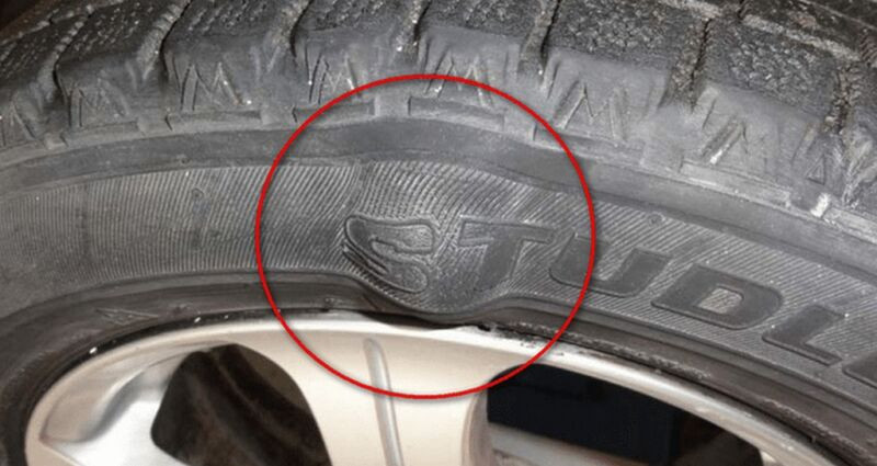 У результаті під впливом внутрішнього тиску в шині утворюється здуття на боковині.