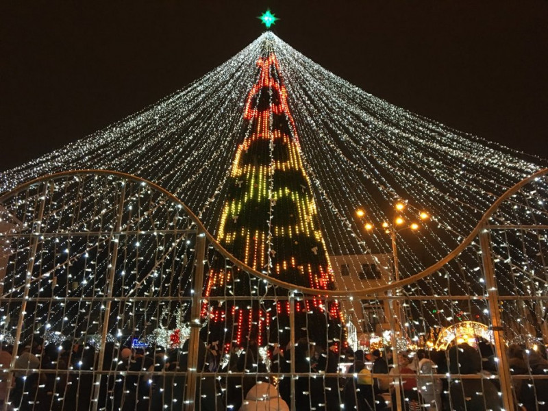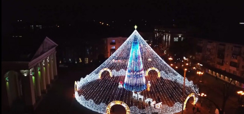 Головна новорічна ялинка із шатром та святковою ілюмінацію у Полтаві до початку повномасштабної війни. Суспільне Полтава