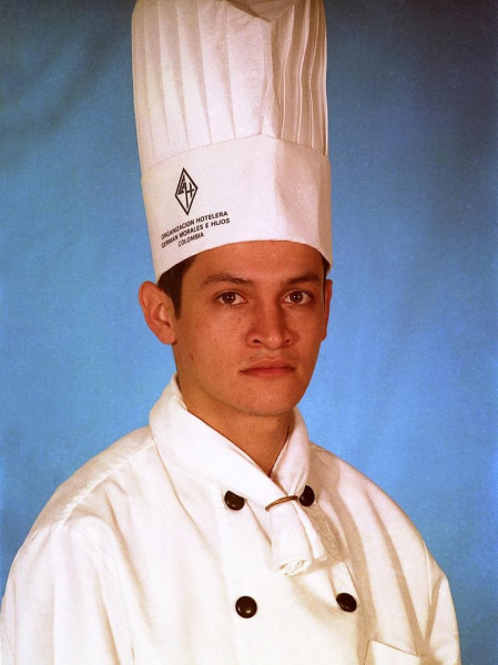 Фото зроблено близько 30 років тому, ймовірно, у 1995 році, коли Хіменесу-Браво було 23. Цей період став початком його кар’єри, яка включала викладання в Національній кулінарній академії в Медельїні після роботи в трьох п’ятизіркових ресторанах Колумбії.