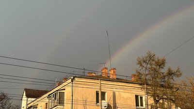 Подвійна райдуга над Хмельницьким під час зливи, 2 квітня 2026 року. Суспільне Хмельницький