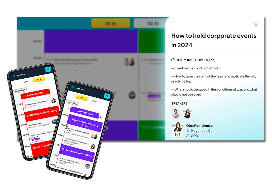- Мобільний додаток: доступ до розкладу, матеріалів події, інтерактивних функцій.
