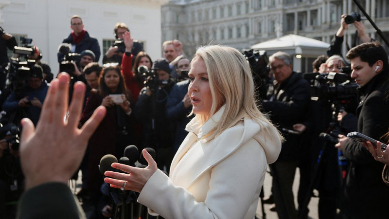 Речниця Білого дому Керолайн Левітт звертається до представників медіа біля Білого дому у Вашингтоні, округ Колумбія, США, 3 лютого 2026 року. REUTERS/Evelyn Hockstein