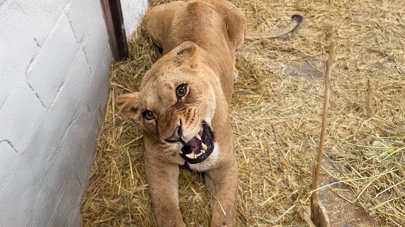 Левицю Сімбу, яку забрали з приватного притулку, тепер звуть Аніса, лютий 2026 року. “Wild Animals Rescue Center”