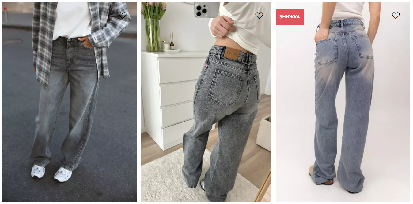 Якщо потрібен більш витягнутий і трендовий силует, wide leg часто стають одним із найвдаліших рішень. Якщо хочеться максимальної універсальності, варто дивитися на моделі, які легко комбінуються і з об’ємним, і з більш зібраним верхом. Також не треба недооцінювати колір. Блакитний денім, темно-синій, графітовий, чорний або молочний – це не просто відтінки, а різні сценарії стилю. Один краще працює на повсякденну легкість, інший – на стриманість, третій – на більш акцентний образ.