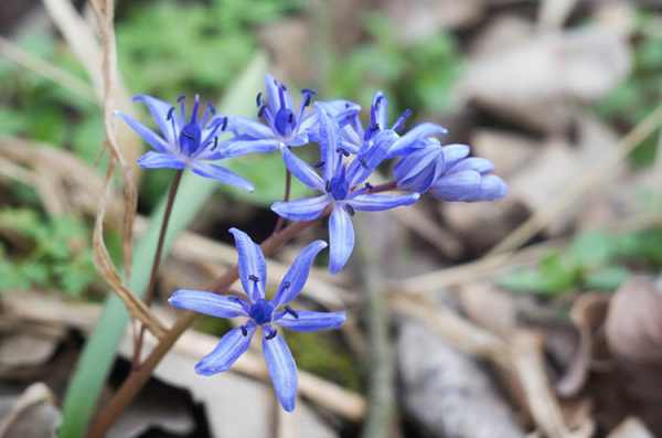 На фото відображені: проліска дволиста, зірочки маленькі та навіть підсніжники.