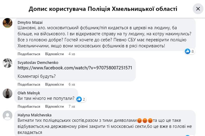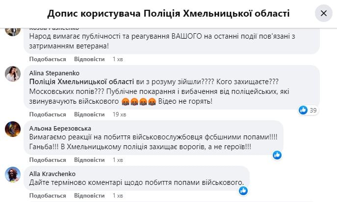 Поведение священнослужителей Московского патриархата и правоохранителей вызвало волну гнева со стороны украинцев. Они требуют немедленных объяснений полиции и наказания виновных в избиении военного.