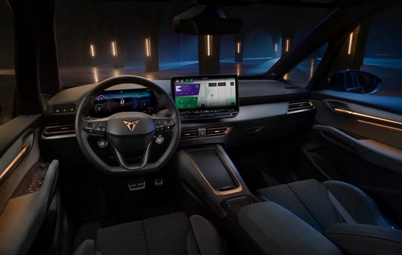 У салоні CUPRA Born 2026 покращили оздоблення. Встановлені нове кермо та збільшений цифровий щиток приладів.