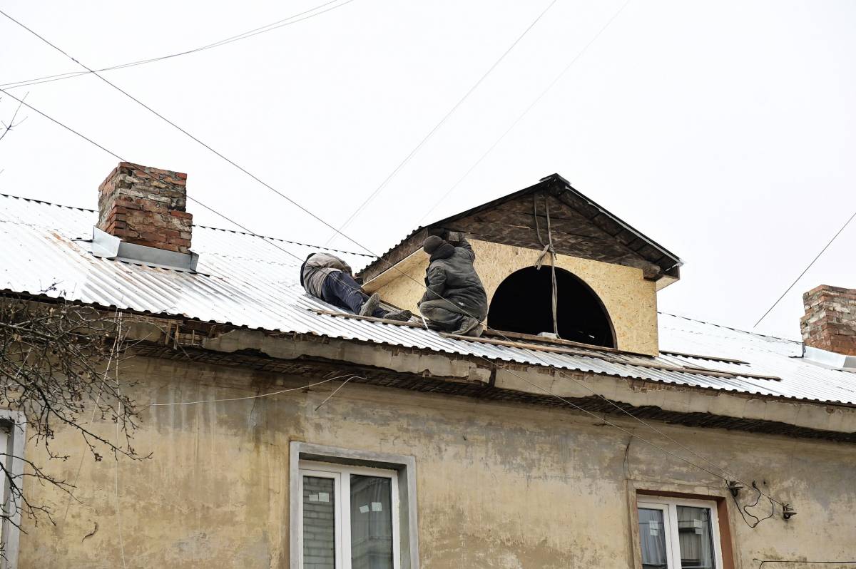 Галина Шелюх, мешканка одного з будинків, пережила окупацію. Внаслідок одного з обстрілів у її квартирі вибило всі вікна, пробило стелю і дах. Зараз усе полагодили.