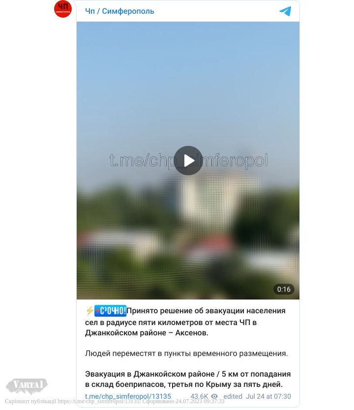 Читайте також: Масштабна бавовна: у Криму евакуюють частину мешканців