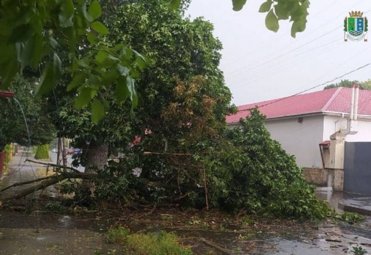 в Ізмаїлі вітром повалило дерева. Лінії електропередачі обірвані.