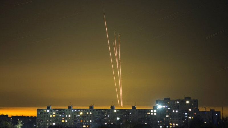 Ракети РФ С-300 над Харковом. 16 лютого 2023 року. Фото: AP Photo / Vadim Belikov