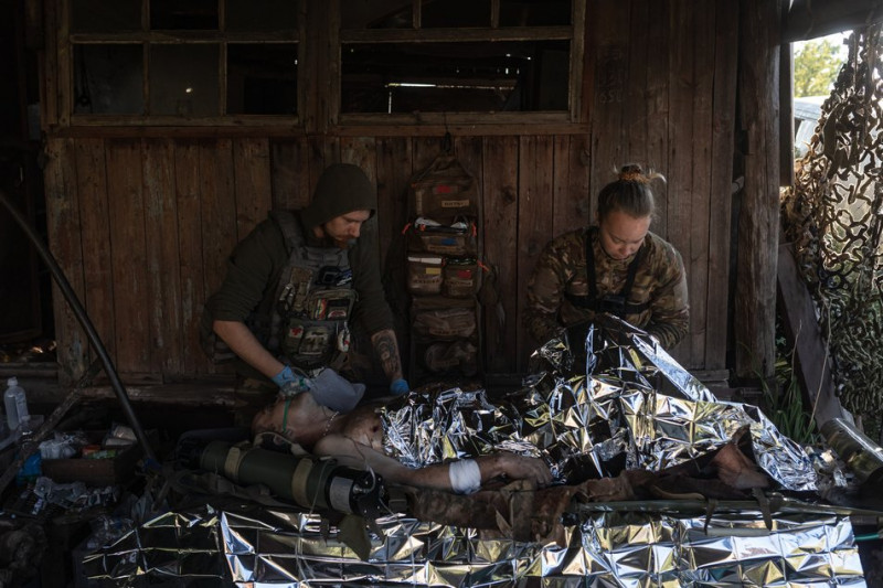 Надання допомоги пораненому бійцеві. Фото надане І. Ткачовим