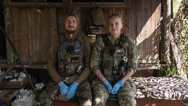 Ігор Ткачов з посестрою. Польовий сортувальний пункт. 2023 рік. фото надано І.Ткачов