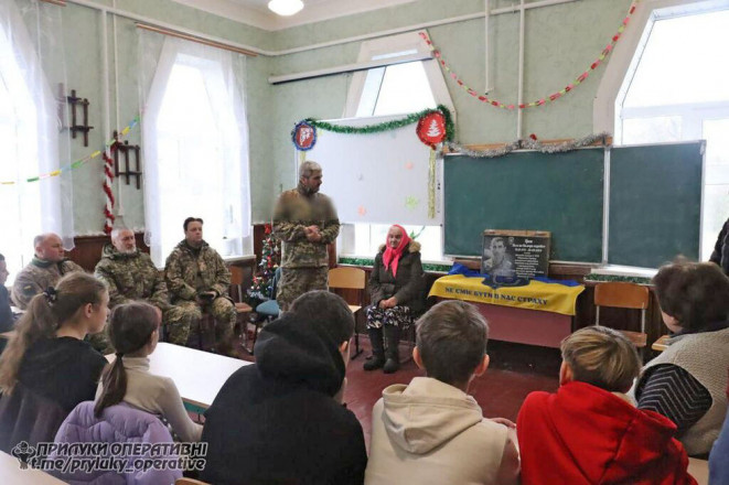 Військові побували на кладовищі в селі Гнідинці, де похований Дем’ян Грек, а також зустрілися з учнями і розповіли про свого побратима.