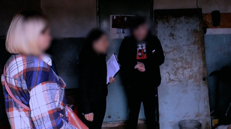 Скріншот з камери спостереження під час допиту сина військовослужбовиці. ФОТО: скріншот з камери відеоспостереження
