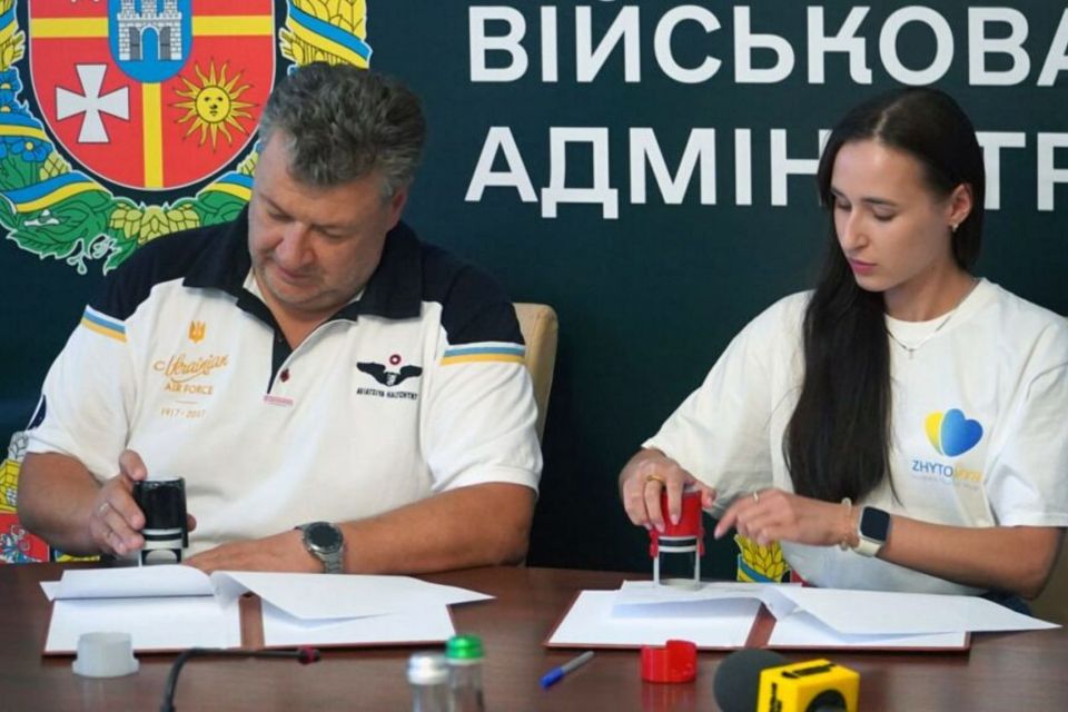 Так, начальник Житомирської ОВА Віталій Бунечко та директорка БФ “Гуманітарний Хаб «Житомир»” Дар’я Сівцева підписали документ, завдяки якому наші захисники отримають ще більше розвідувальних дронів, а цивільні — гуманітарної допомоги.