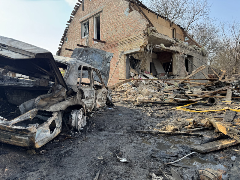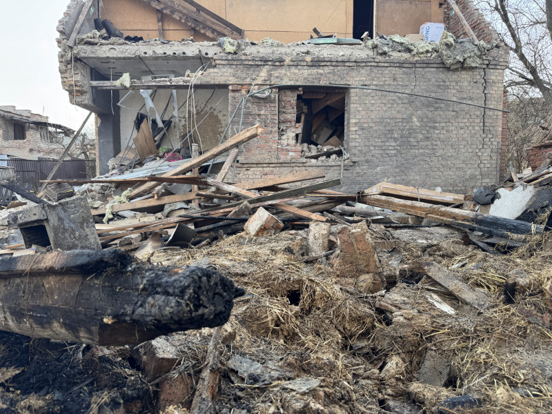 Зруйнований будинок Олександра Глазова та Даші Євтух після атаки БпЛА 1 квітня. Суспільне Полтава