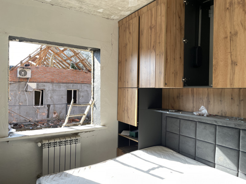 "Ми не так давно купили меблі у спальню. Перед цим у нас дитяче ліжечко стояло. В орендарів тут жили діти, була дитяча кімната. Дві дитини проживало тут. У цей час я був у Києві, дружина з дитиною в селі були. Нам зателефонував чоловік, який проживав якраз тут. І він говорить, кричить, що приліт, горить усе. І я запитав, чи вони живі. Вони сказали, що все добре. Дитину порізало склом, але все добре. І все. З того моменту я кажу: "Будьте в безпеці!". І відбилися, і все", — поділився власник зруйнованого будинку Олександр Глазов.