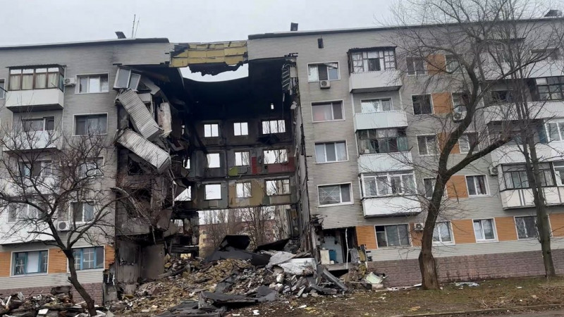 Обстріляна багатоповерхівка у Бахмуті. ФОТО: Суспільне Чернігів