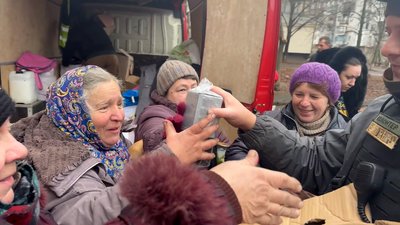 "Через постійні обстріли в Бахмуті ми планували там побути 10-15 хвилин, максимум 20 хвилин. В наслідку побули від чотирьох до п'яти годин. Люди дійсно голодні, живуть у підвалах, тому що багатоповерхові квартали розбиті вщент, прямо наскрізь. Дуже велика недостача у людей води", – розповів голова фонду "Вільна-Країна" Дмитро Безруков.