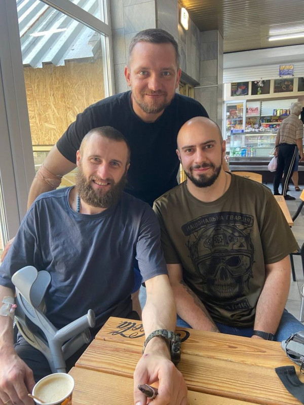 Руслан Мельник у кав’ярні із побратимами. Руслан Мельник