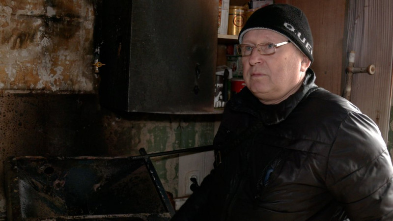"Вже було сильне задимлення, дуже сильне, дихати було нічим. Син, він теж працівник зараз пожежної охорони, побіг вниз подивиться, а я відкривав фрамуги, щоб випустити дим. Син сказав, що він заповз сюди, тут горіло і він затушив".