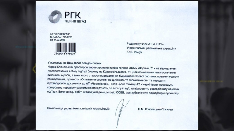 Відповідь від “Чернігівгаз”. ФОТО: Суспільне Чернігів