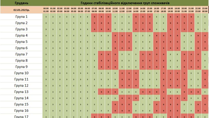 - Із 31 грудня в області не застосовували погодинні графіки відключень. Обленерго опублікувало графік відключень на 2 січня, втім згодом його скасували. До кінця доби в регіоні не вимикатимуть електрику.