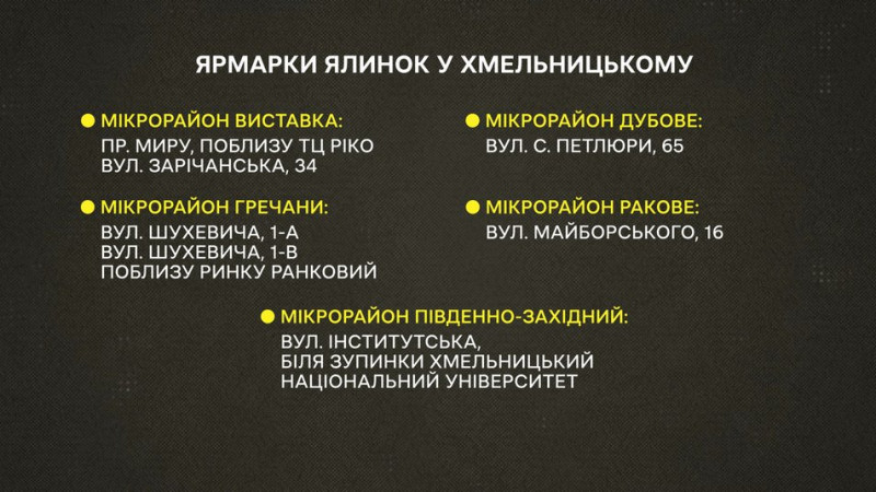 Місця, де продаватимуть ялинки в обласному центрі. Інфографіка Суспільне Хмельницький