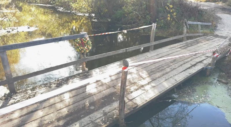 Дерев’яний міст, на якому, за попередньою версією слідства, внаслідок нещасного випадку загинула жінка, листопад-2025 року. Суспільне Хмельницький