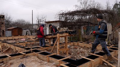 У селі Ягідне, що за 15 кілометрів від Чернігова, відбудовують сім будинків, які постраждали під час російської окупації. Ці будинки відновлюють коштом Латвійської республіки. Закордонні партнери надали будівельні матеріали, а самі роботи виконують українські волонтери.