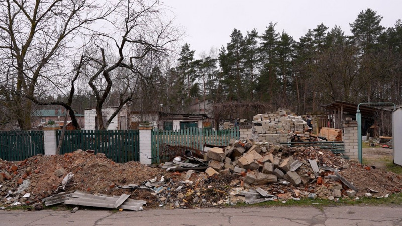 Залишки зруйнованого будинку родини Матвієнків. ФОТО: Суспільне Чернігів"Вони (представники Латвії, — ред.) надали будівельні матеріали конкретно на сім будинків, список черги обирала вже сама громада. Тобто вони вирішували хто буде у першій черзі, а дві сім’ї зголосилися, що вони самі будуть відбудовувати", — розповідає перший заступник начальника Чернігівської ОВА Костянтин Мегем.